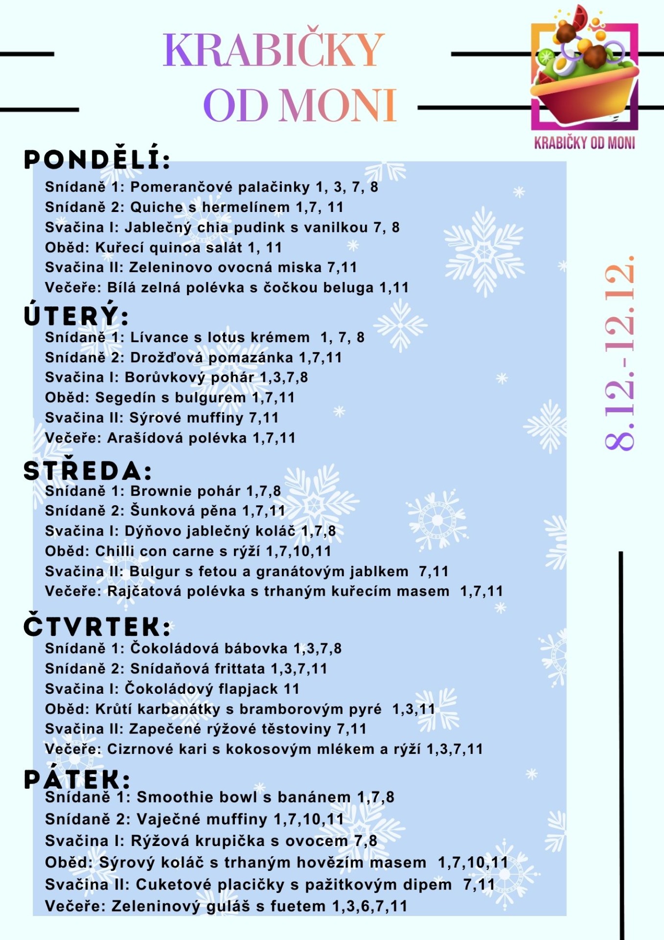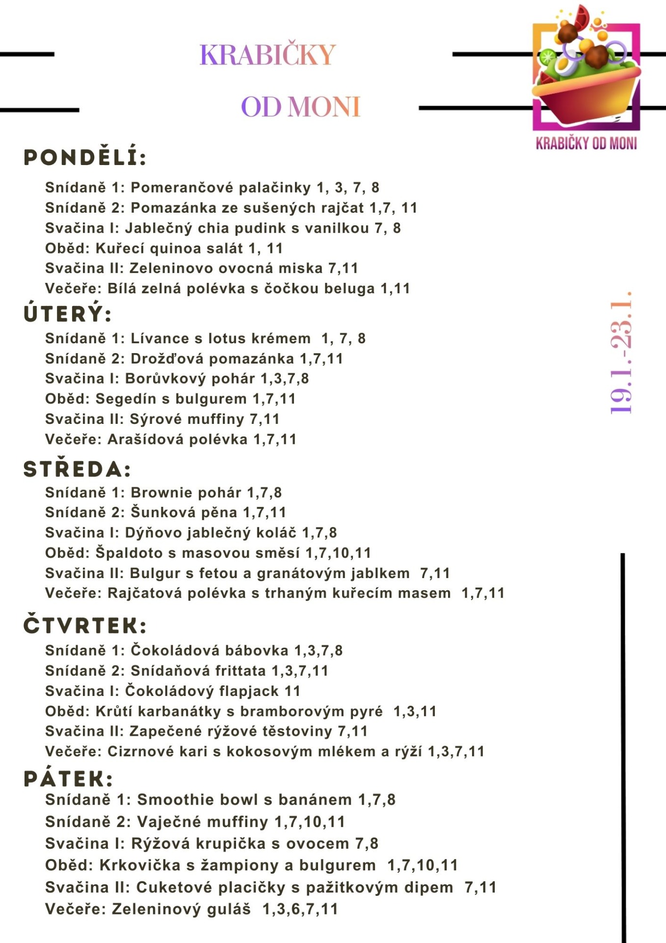 Objednávací proces je jednoduchý. Nejpozději každý čtvrtek si můžete objednat krabičky na celý týden následujícího týdne. Platí se vždy předem, a platební metody vám vždy pošlu.